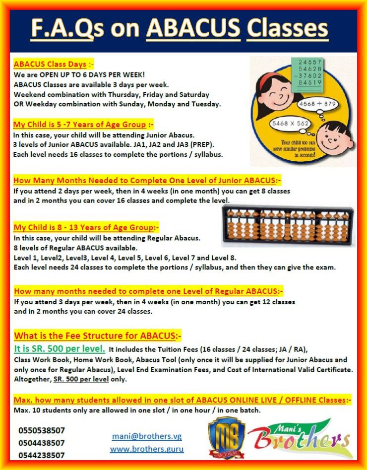 Abacus the Mental Math Department function 6 days in a week!